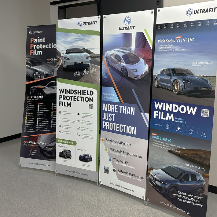 Banner with visuals and specs for ULTRAFIT Paint Protection Film.